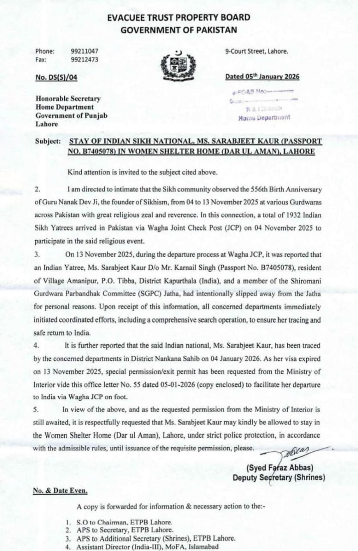ਉਸਦਾ ਨਾਮ ਨਾ ਤਾਂ ਪਾਕਿਸਤਾਨ ਦੇ ਐਗਜ਼ਿਟ ਰਿਕਾਰਡ ਵਿੱਚ ਹੈ ਅਤੇ ਨਾ ਹੀ ਭਾਰਤ ਦੇ ਐਂਟਰੀ ਰਿਕਾਰਡ ਵਿੱਚ।