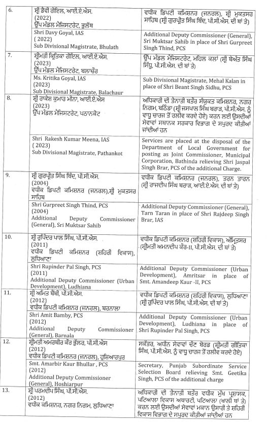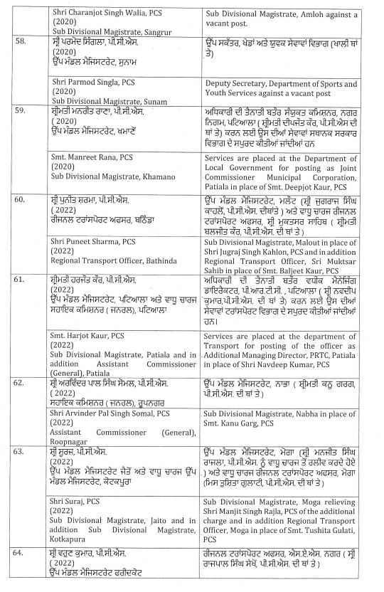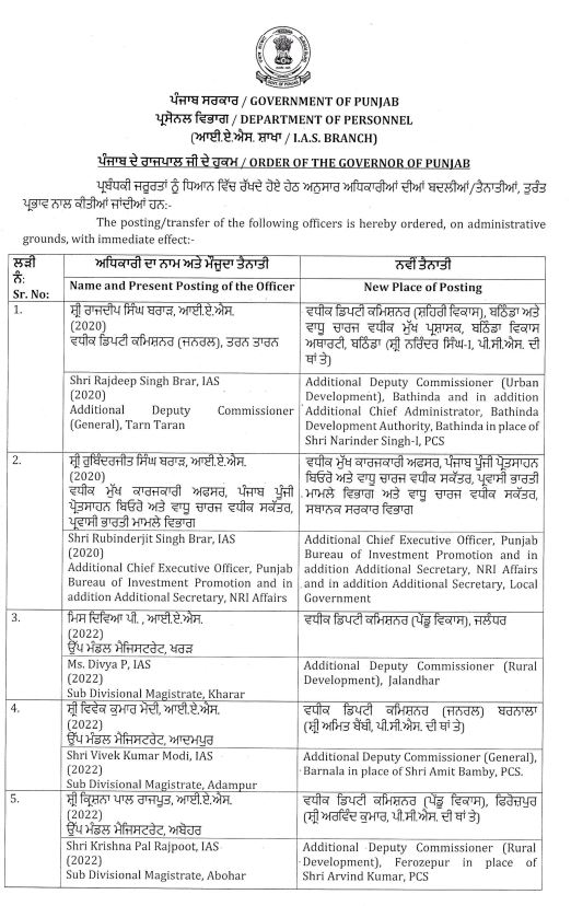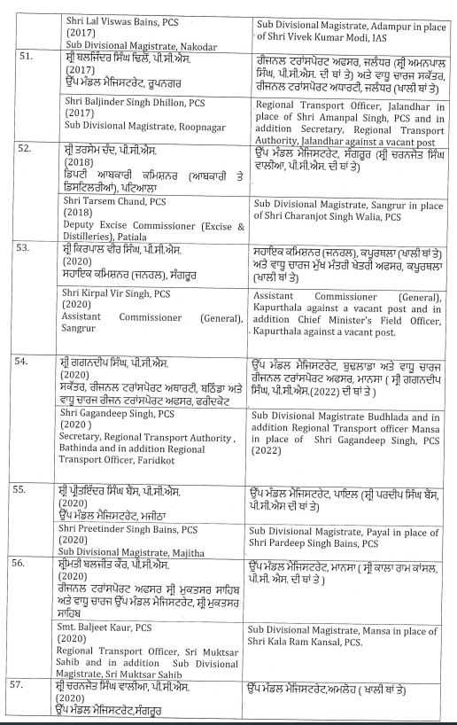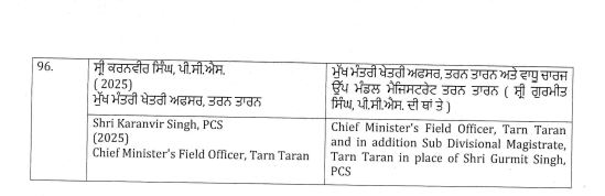 ਪੰਜਾਬ 'ਚ ਵੱਡੇ ਪੱਧਰ 'ਤੇ ਪ੍ਰਸ਼ਾਸਨਿਕ ਫੇਰਬਦਲ ਹੋਏ ਹਨ96 IAS ਤੇ PCS ਅਧਿਕਾਰੀਆਂ ਦਾ ਤਬਾਦਲਾ ਹੋਇਆ ਹੈ