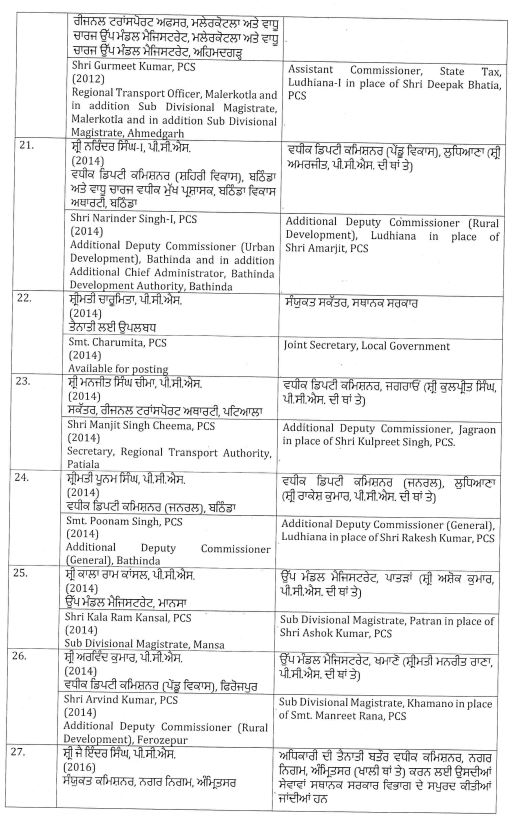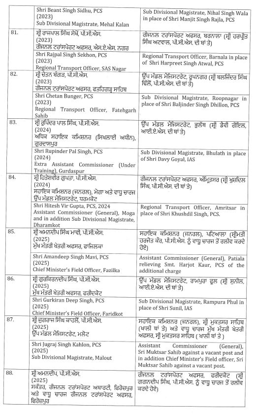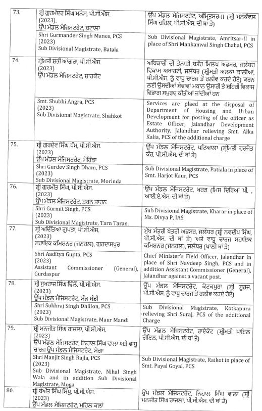 ਪੰਜਾਬ 'ਚ ਵੱਡੇ ਪੱਧਰ 'ਤੇ ਪ੍ਰਸ਼ਾਸਨਿਕ ਫੇਰਬਦਲ ਹੋਏ ਹਨ96 IAS ਤੇ PCS ਅਧਿਕਾਰੀਆਂ ਦਾ ਤਬਾਦਲਾ ਹੋਇਆ ਹੈ